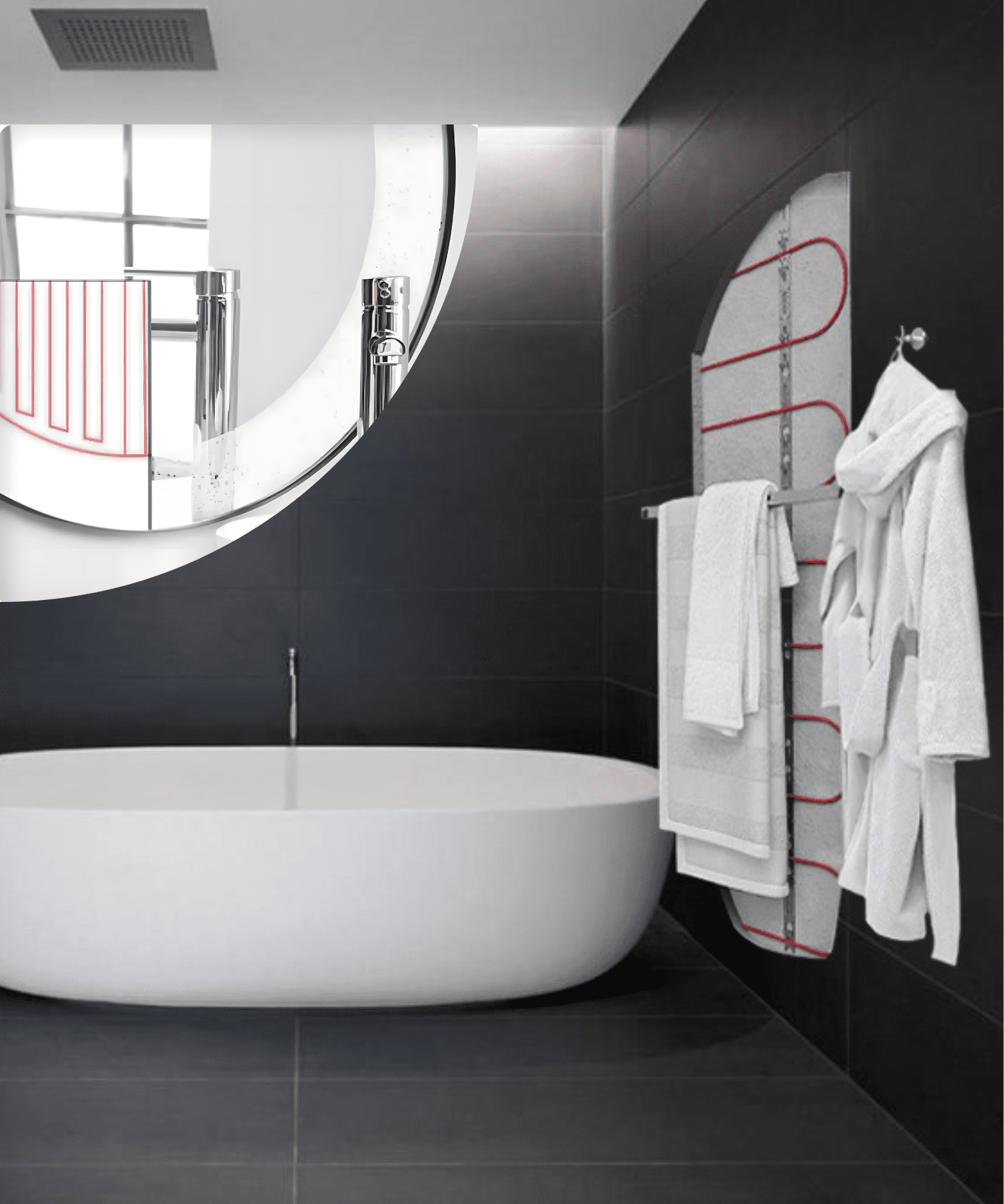 Скрытый в стене полотенцесушитель: