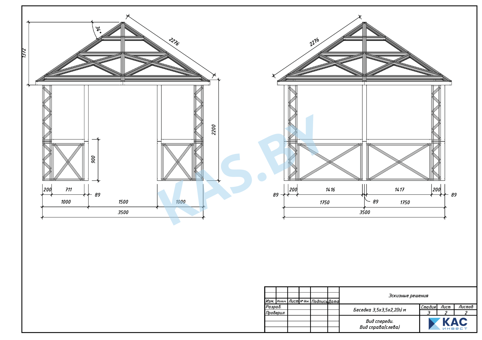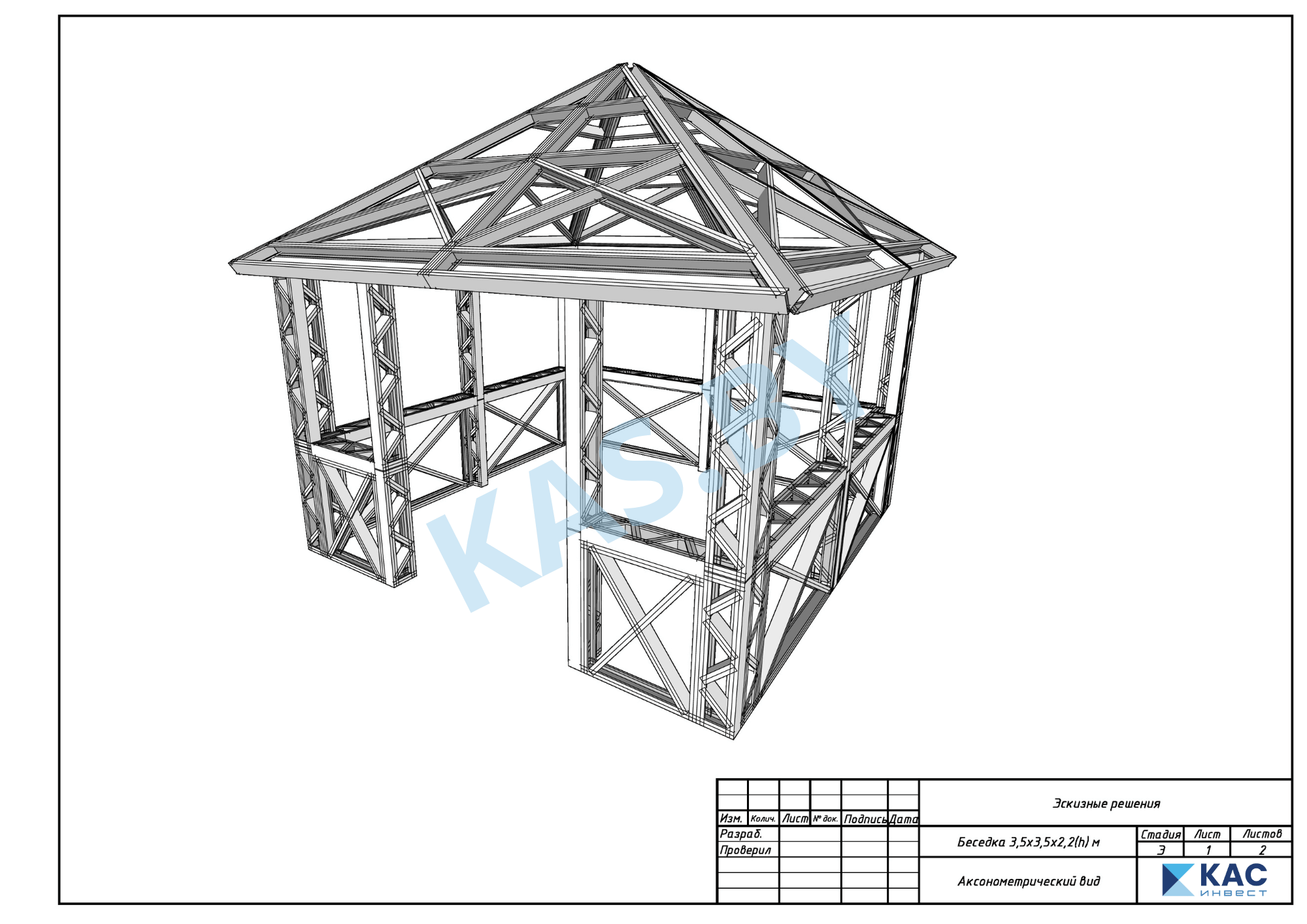 Каркас беседки из ЛСТК 3,5 х 3,5 м
