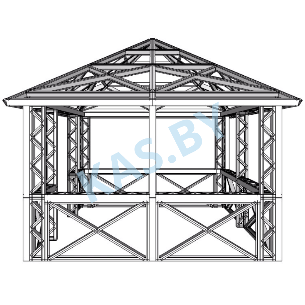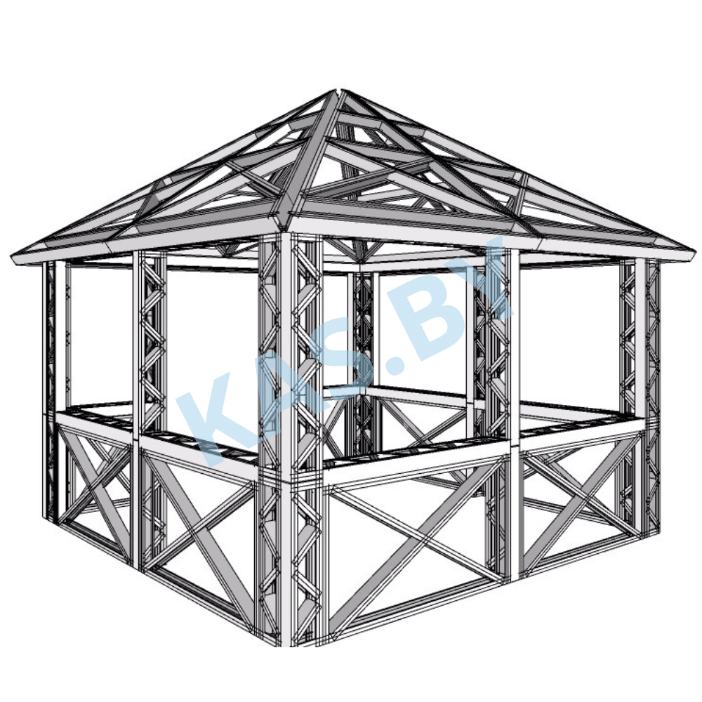 Представляем вашему вниманию каркас беседки из легких стальных тонкостенных конструкций (ЛСТК) размером 3,5х3,5 м — идеальное решение для вашего дачного участка или загородного дома. Эта беседка сочетает в себе надежность, долговечность и современный стиль, что делает ее отличным выбором для создания комфортного пространства на открытом воздухе.