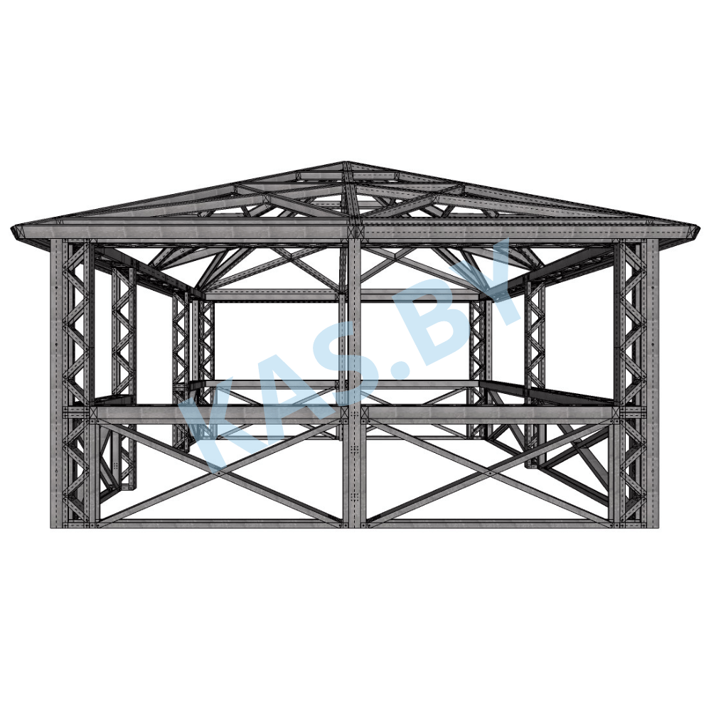 Представляем вашему вниманию каркас беседки из легких стальных тонкостенных конструкций (ЛСТК) размером 4,5х4,5 м — идеальное решение для вашего дачного участка или загородного дома. Эта беседка сочетает в себе надежность, долговечность и современный стиль, что делает ее отличным выбором для создания комфортного пространства на открытом воздухе.