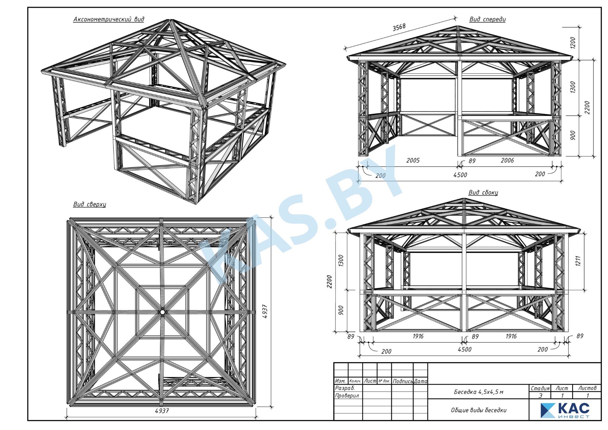 Каркас беседки из ЛСТК 4,5 х 4,5 м