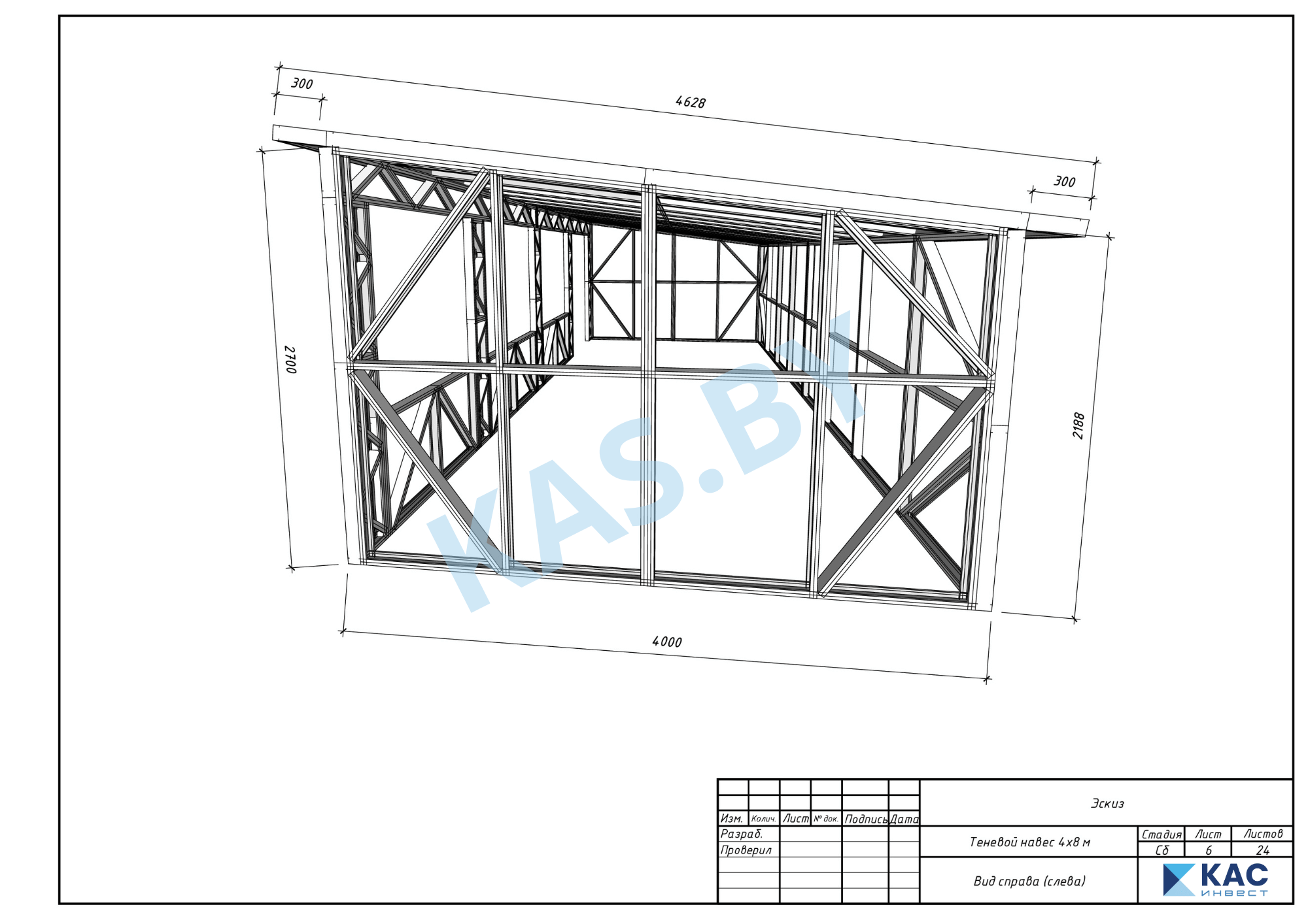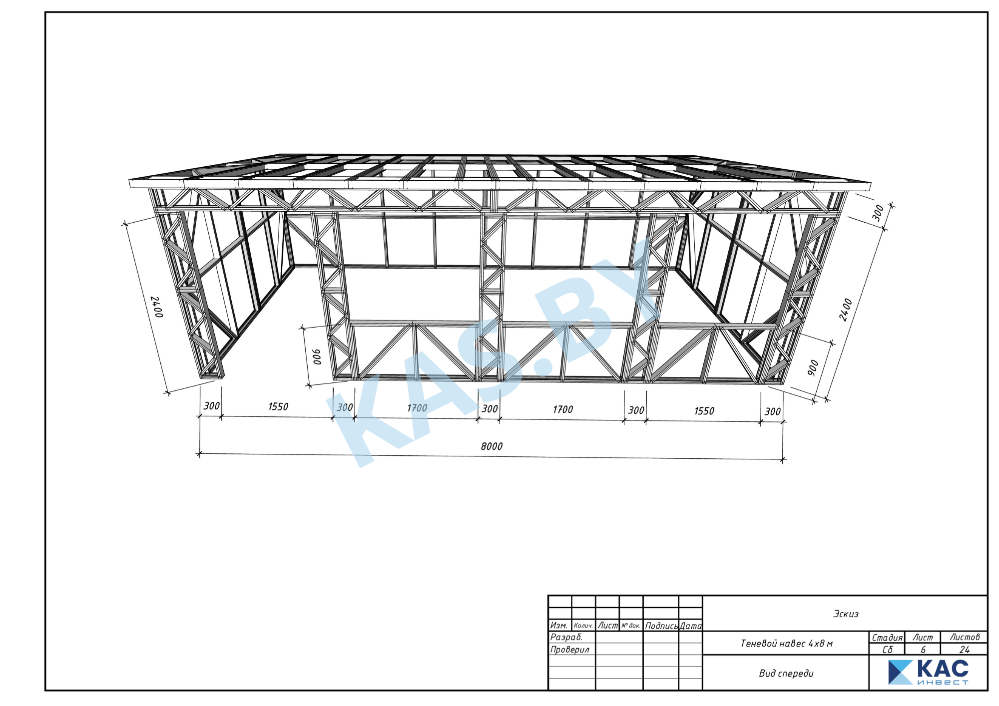 Каркас беседки из ЛСТК 4 х 8 м