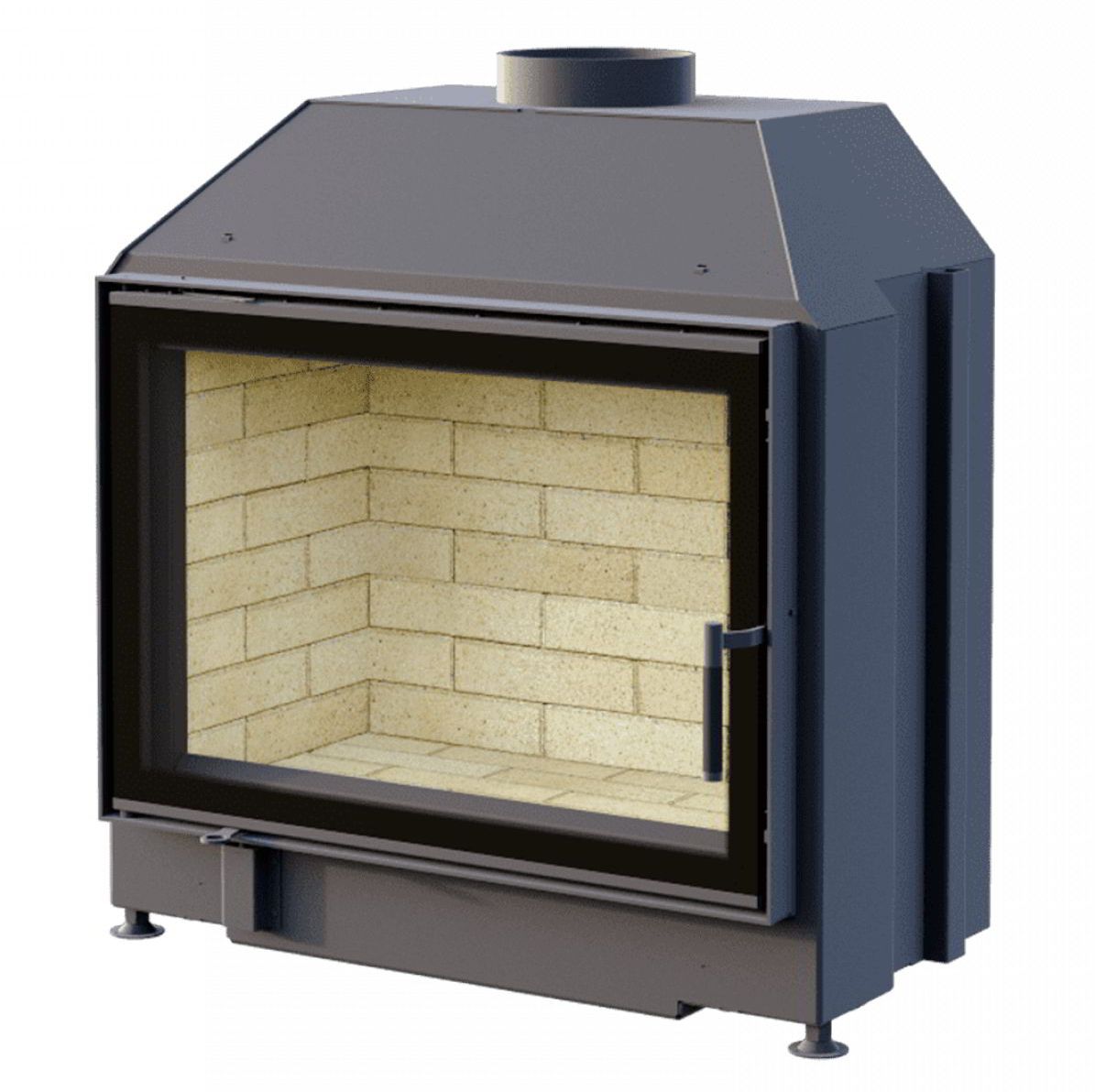 Топка отопительного класса, с боковым открыванием дверцы. Красивый вид на огонь. Усиленный внешний корпус.