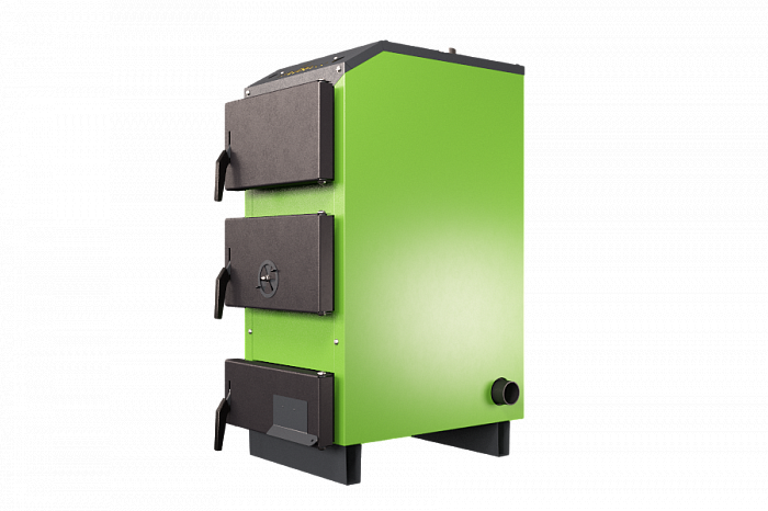 Котел работает как в закрытых так и в открытых системах отопления, выполнен из стали марки 09Г2С толщиной 4 мм. Все стенки и перегородки котла водонаполнены. Котел оснащен большими и удобными дверцами с механизмом затяжки плотности прилегания. Благодаря этому его удобно чистить и обслуживать, уплотнительный шнур используется керамический. Также все котлы оборудованы местом для установки электрического ТЭНа.